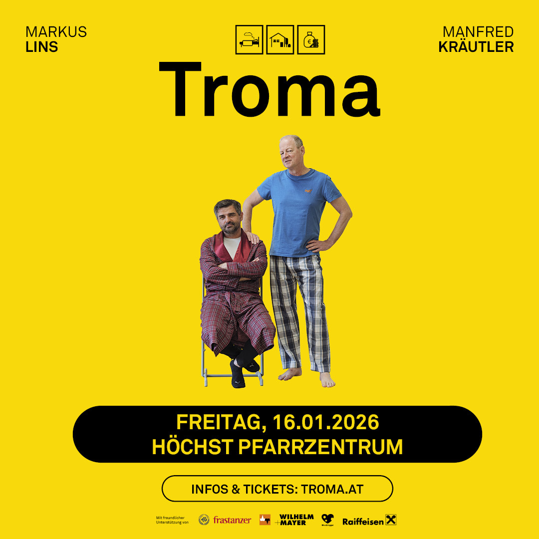 Manche tun es oft, manche nur gelegentlich. Nein, nicht das, was Sie denken! Es geht ums Träumen – also „troma“ auf Vorarlbergerisch. Zwischen Traumtänzer und Albtraum ist genügend Platz für Skurriles, Erstaunliches, Verblüffendes und vor allem für viel Komisches. Egal wie und was – unterhaltsam, witzig und pointiert sind die Träumereien, in denen es beim fünften gemeinsamen Programm von Markus Lins und Manfred Kräutler geht. Träumen und lachen Sie mit, wenn die beiden Kabarettisten auf der Bühne alles andere tun als „troma“.